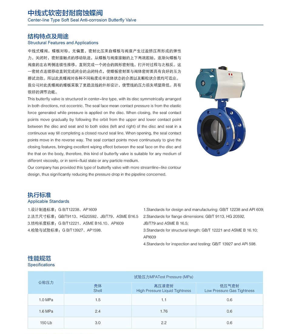 中線式軟密封耐腐蝕蝶閥